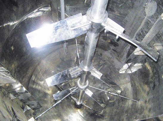 聚合釜、合成釜、萃取釜、精餾釜,加氫釜攪拌目的只要化學(xué)聚合過程需要強(qiáng)的剪切和混合能力的攪拌達(dá)到物料之間溶解分散聚合的過程,罐體比功率大,常增加變頻控制裝置防止啟動過程的大扭矩和過程變化中調(diào)節(jié)速度以節(jié)約能耗。使用的攪拌器形式有:三葉后掠式(HQ),開啟渦輪式(XKK,MK,ZK)等,雙折葉槳式(SJ、CJ)等。